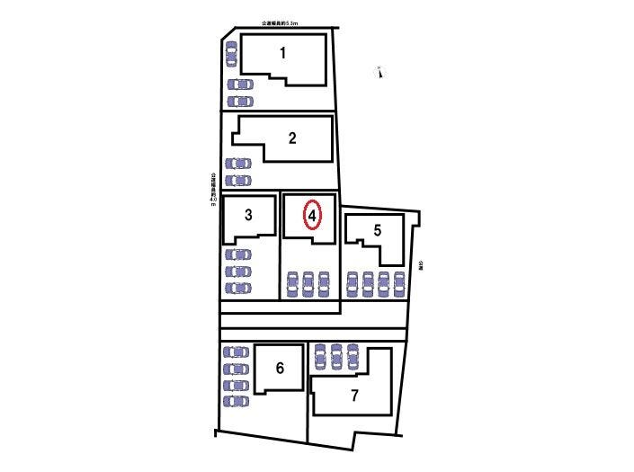 | 備考 | ※西側42条2項道路(セットバック0.72㎡有)※土地面積:地役権部分39.6㎡(うち路地状部分約20㎡)含 | ||